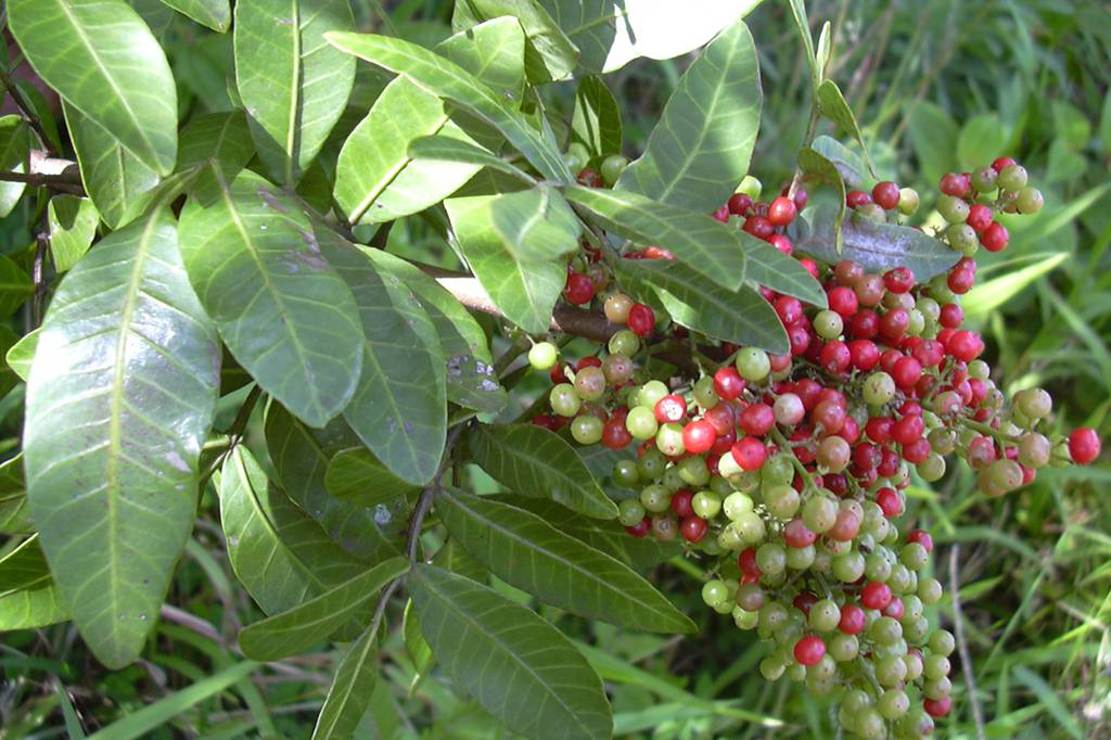 aroeira-vermelha, também chamada de aroeira-pimenteira, contêm um